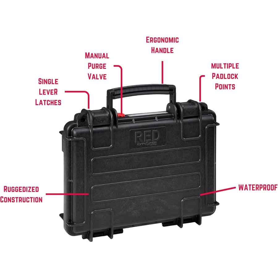 RED by EXPLORER Slim Hard Pistol Case – 3″ Deep, Waterproof, Black, Made in Italy